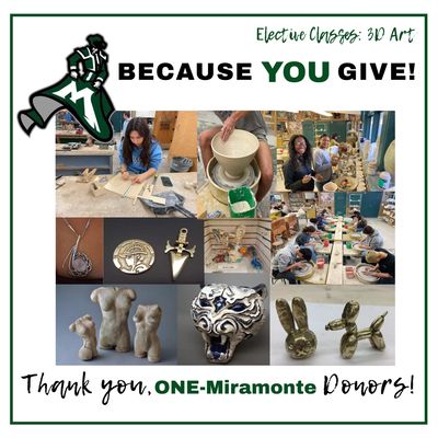 Because you give to ONE-Miramonte, our students receive a rich, well-rounded education that includes the arts. Your gifts support creativity, self-expression, and exploration. Thank you for your generosity in making Miramonte an exceptional place for students.