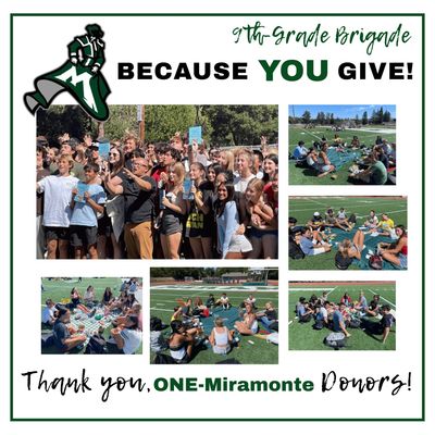 When you give to ONE-Miramonte, the funds you contribute allow our teachers and administration the flexibility to find creative ways to improve the student experience at Miramonte. Donations to ONE-Miramonte support every student, every teacher, and every class. Because you give, our newest students have the opportunity to connect more deeply with peers and with their school, both of which are positively correlated with school engagement. Thank you, ONE-Miramonte donors!